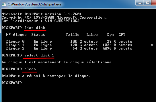 Reformater complètement un disque dur à l'aide de l'invite de commande