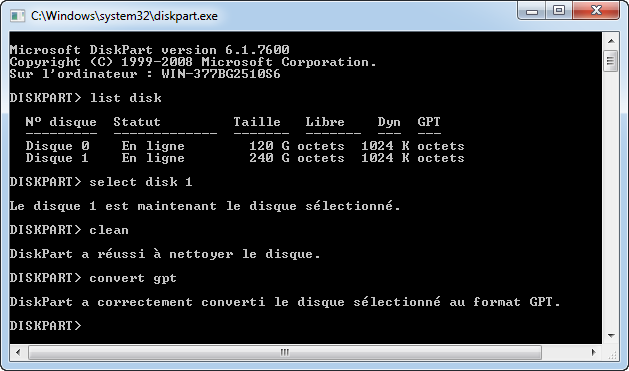 La commande Diskpart peut faire la conversion en suivant les étapes ci-dessous.