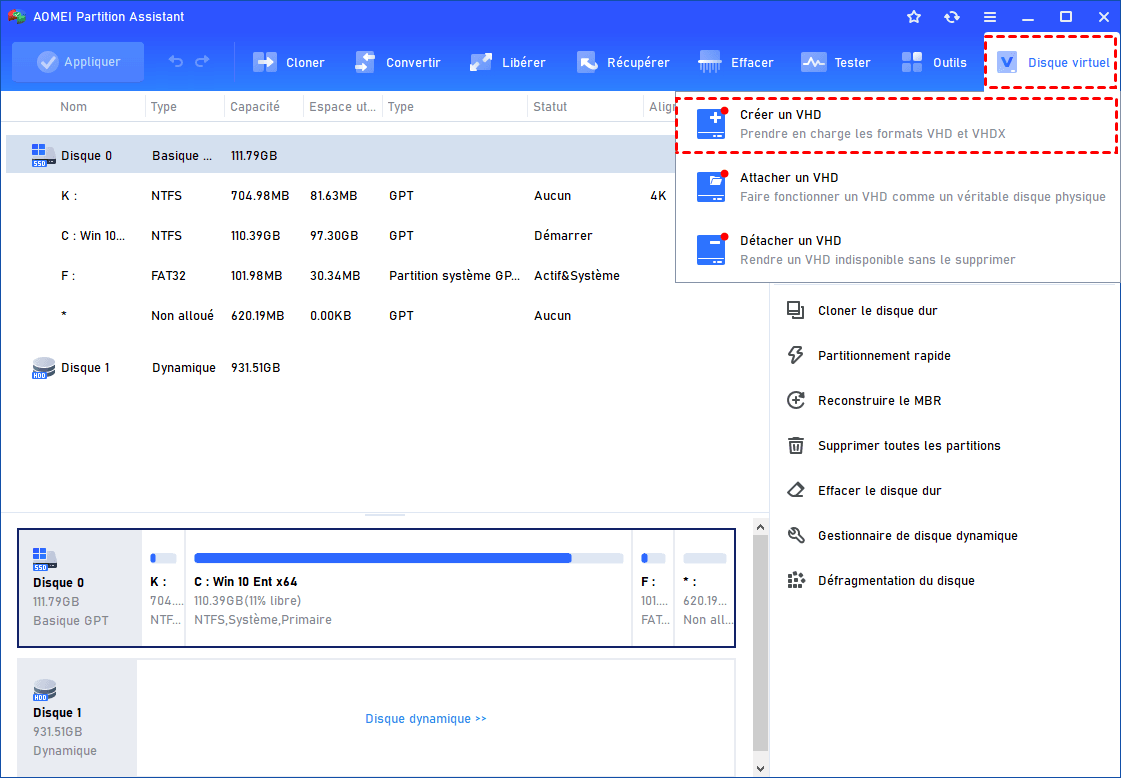Méthode 1. Créer un disque dur virtuel sur Windows 11/10/8/7 avec AOMEI Partition Assistant