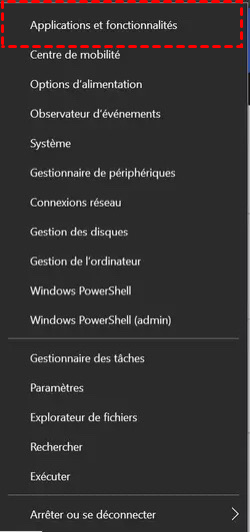 Étape 1. Faites un clic droit sur l’icône « Windows » et sélectionnez « Applications et fonctionnalités ».