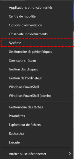 Étape 1. Faites un clic droit sur l'icône « Windows », sélectionnez « Système ».