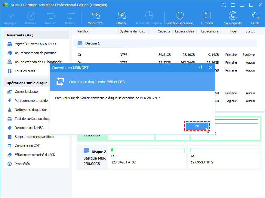 * AOMEI Partition Assistant Professional vous permet également de convertir le disque MBR en GPT sans perdre de données.