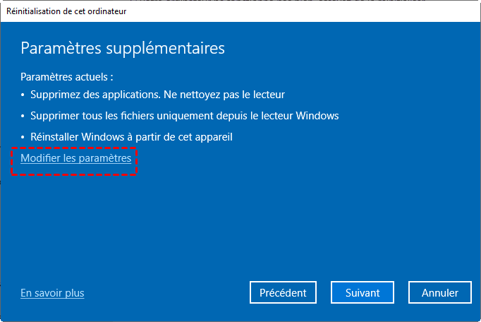Étape 7. Vous revenez aux paramètres actuels, cliquez sur Suivant et continuer à réinitialiser le PC.