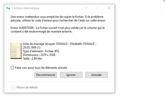 Erreur 0x800703ee lors de la copie de fichiers