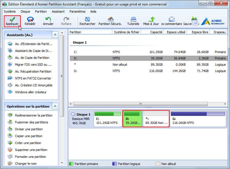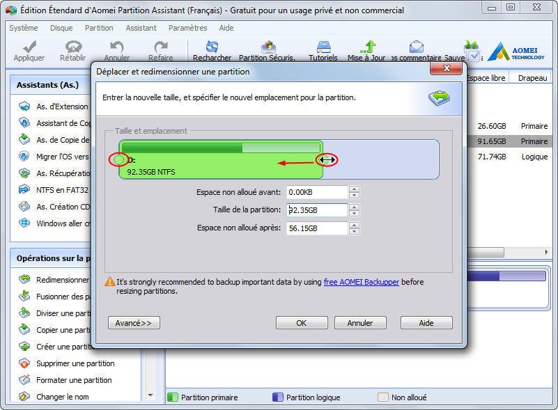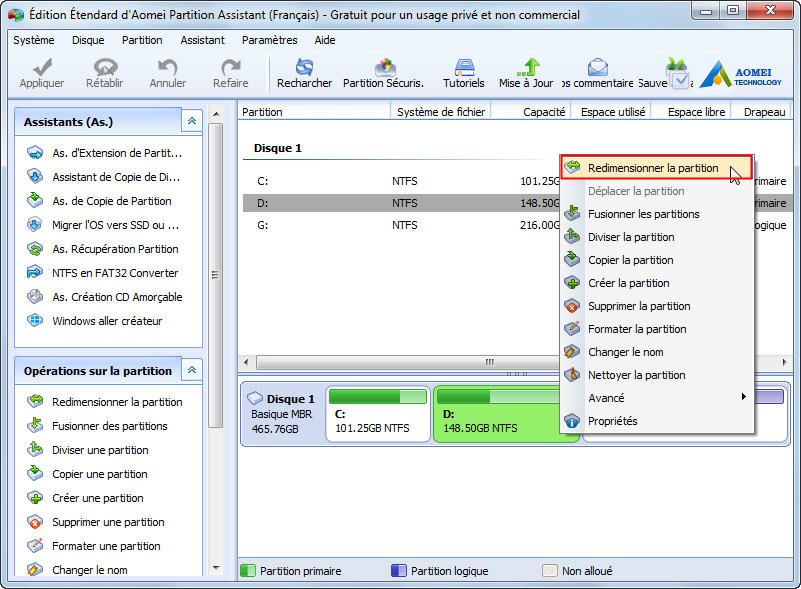 Pour réduire une partition avec AOMEI Partition Assistant :