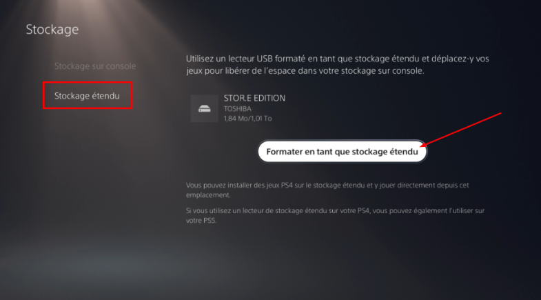 Si vous avez une PS4 et vous avez acheté une nouvelle PS5, alors, vous ne voulez plus stocker vos anciens jeux PS4 sur votre PS5, vous pouvez essayer de changer l'emplacement d'installation par défaut sur le nouveau disque dur. Avant de commencer, vous devez formater votre disque pour l'utiliser avec votre PS5, pour le faire, suivez les étapes :