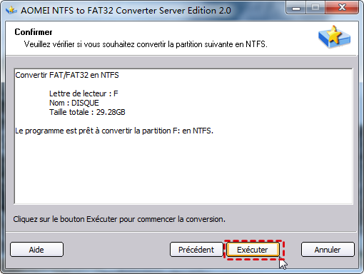 Méthode 2. Convertir le système de fichiers FAT32 en NTFS sans formatage