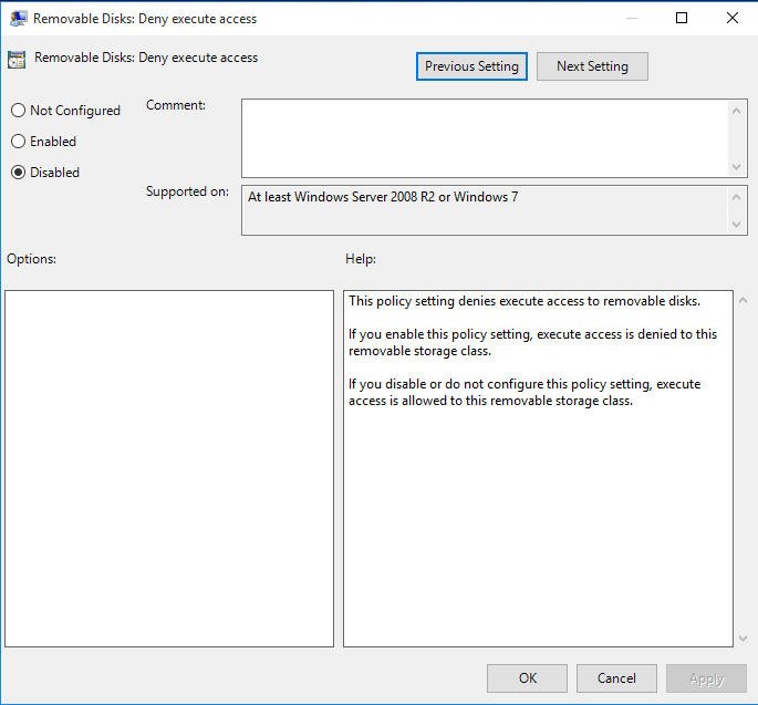 3. Désactivez « Disques amovibles : refuser l'accès en exécution », « Disques amovibles : refuser l'accès en lecture » et « Disques amovibles : refuser l'accès en écriture ».