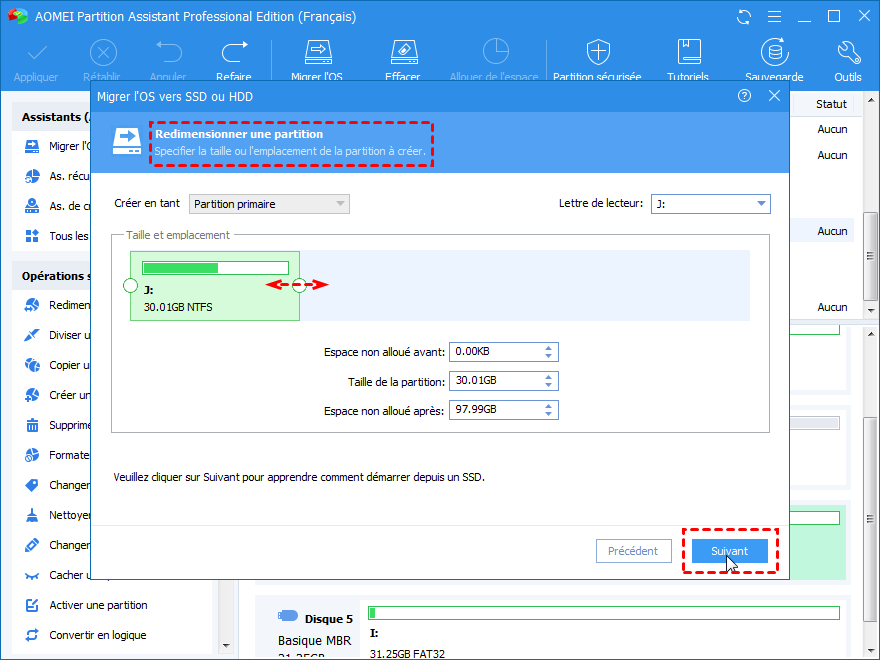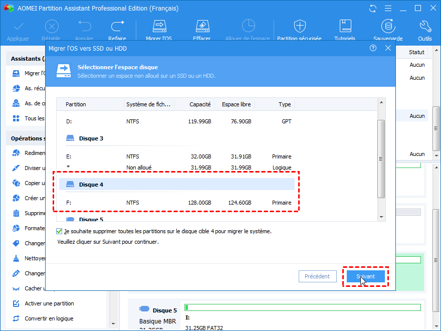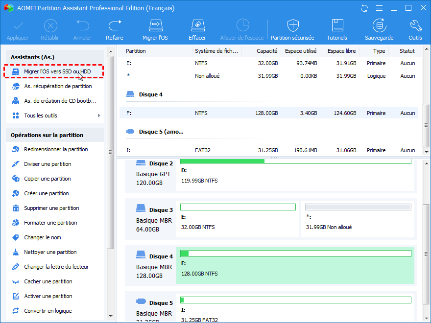 La partie suivante vous présentera comment migrer l'OS d'un HDD vers un SSD avec une alternative au kit de transfert de données SSD Crucial - AOMEI Partition Assistant Professional.