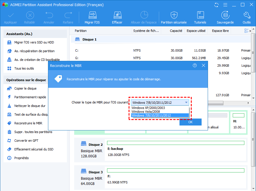 5. Choisissez le Type de MBR pour votre système d'exploitation Windows actuel. Cliquez sur OK.