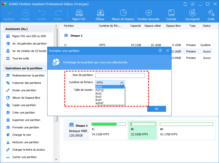 Étape 2. Choisissez un système de fichiers souhaité comme NTFS, puis cliquez sur OK.