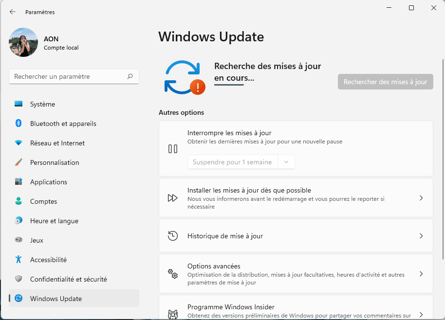 1. Allez dans Paramètres Windows > Mise à jour et sécurité > Windows Update (Ou Paramètres > Mise à jour et sécurité pour Windows 10).