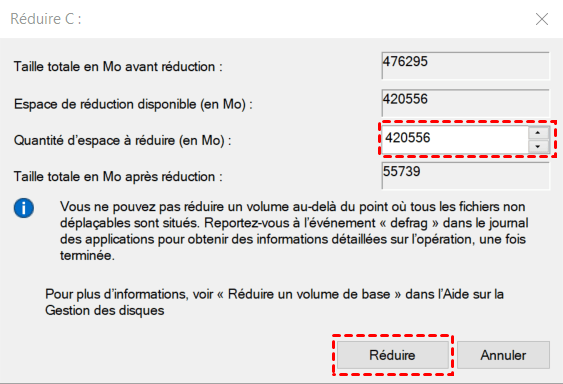 Dans les deux situations différentes, on doit appliquer les solutions correspondantes pour partitionner le disque C.