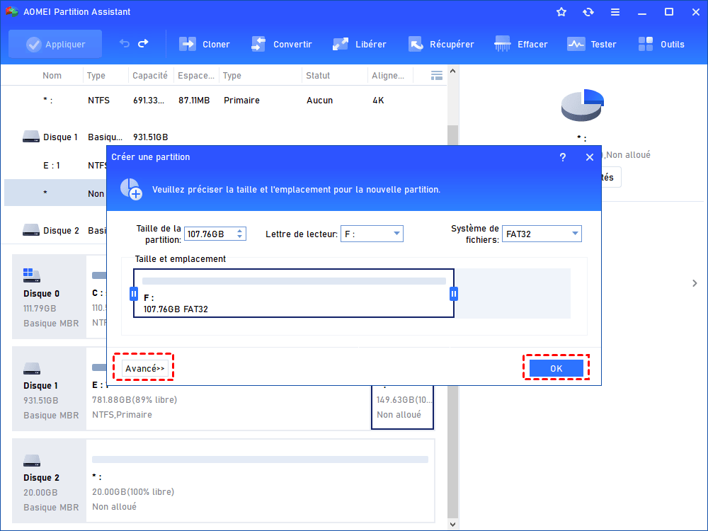 Pour créer une nouvelle partition avec AOMEI Partition Assistant :