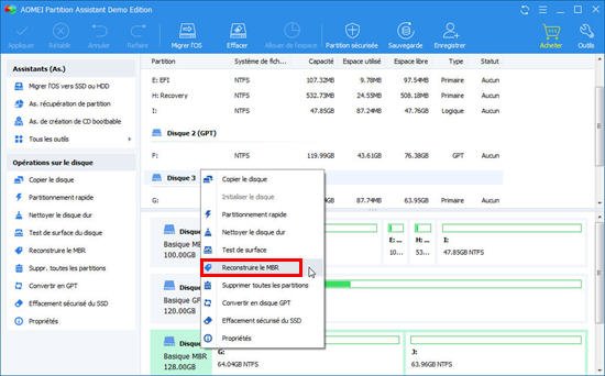 3. Reconstruire le MBR avec le gestionnaire de disque dur