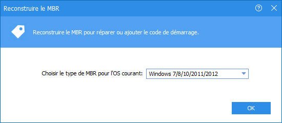 Étape 3. Il va apparaître une nouvelle fenêtre. Choisissez le type de MBR pour le système d'exploitation actuel, cliquez sur OK.