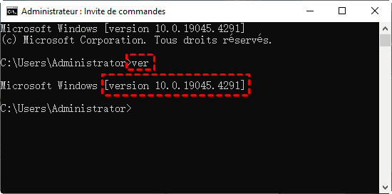 Cette commande affichera la version, la build et l'édition de Windows de votre système.