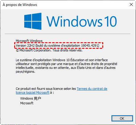 4. Une fenêtre apparaîtra, affichant la version, l'édition et la build de Windows de votre système.