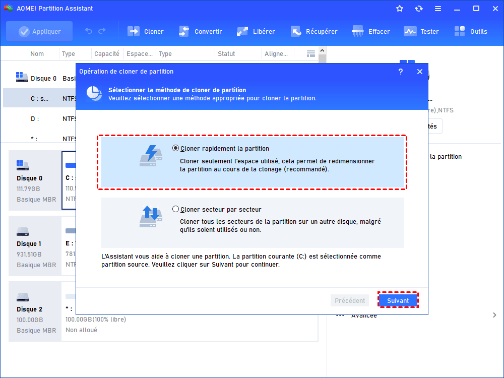 Étape 2 : Sélectionnez la méthode Cloner rapidement le disque et cliquez sur Suivant.