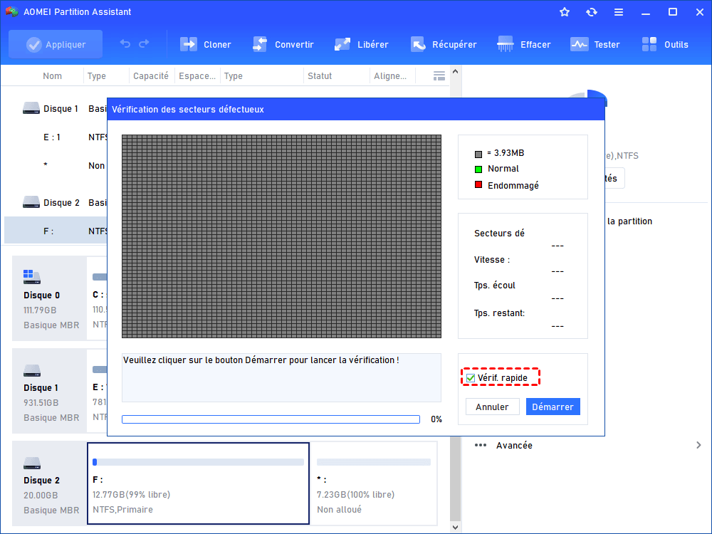 Si vous voulez vérifier tout le disque dur en une seule fois, ce logiciel offre la fonctionnalité Test de surface du disque.