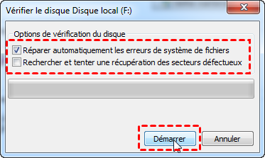 2. Dans la petite fenêtre contextuelle, cochez « Rechercher et tenter une récupération des secteurs défectueux ».