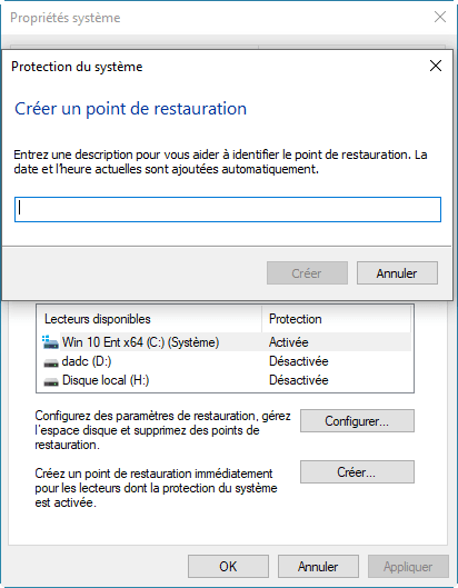 Voici les étapes pour créer un point de restauration et exécuter une restauration du système sur Windows 10 et 11 :