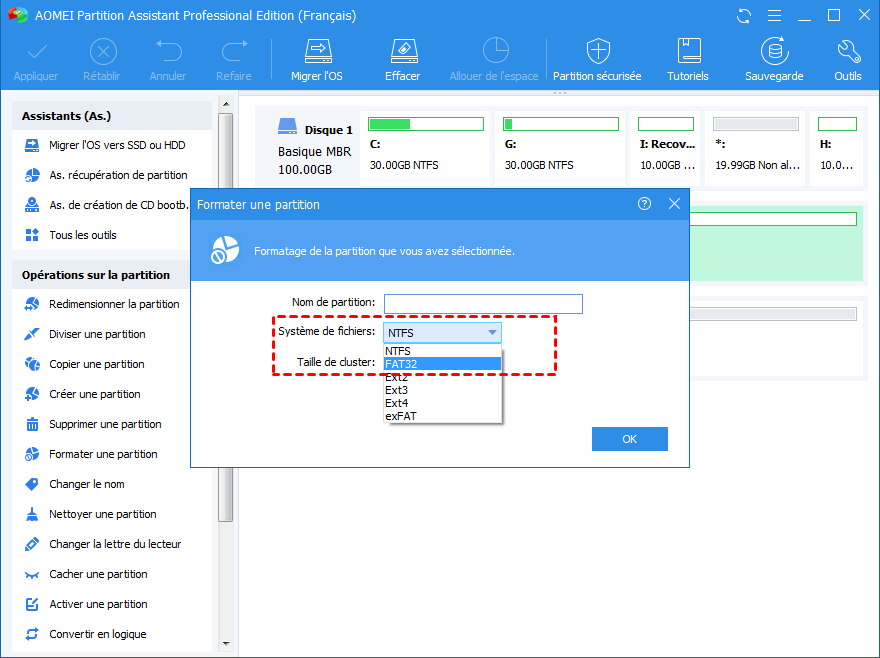 2. Dans cette fenêtre contextuelle, choisissez le système de fichiers approprié. (Ici NTFS est sélectionné.) Cliquez ensuite sur « OK ».
