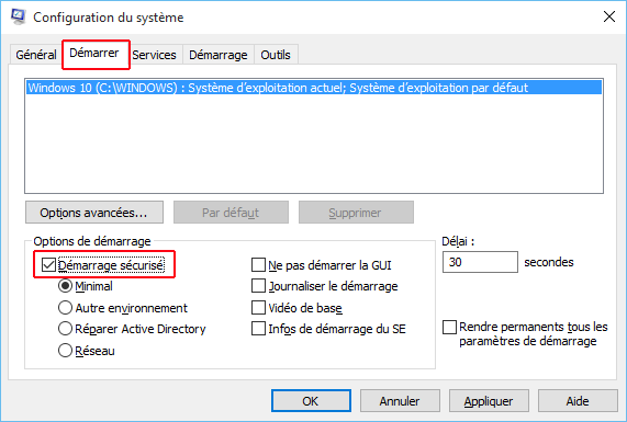 Étape 3. Windows démarrera en mode sans échec cette fois. Exécutez à nouveau msconfig et décochez l'option Démarrage sécurisé sous et redémarrez votre ordinateur.