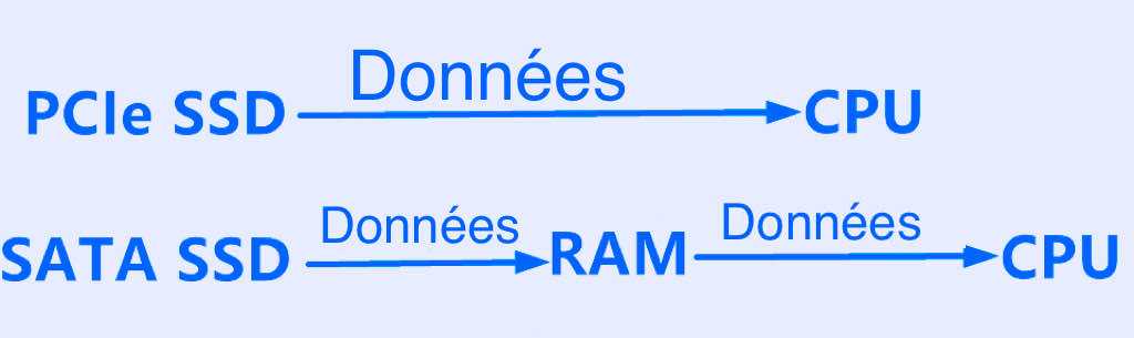 SATA et PCIe sont deux types de normes de bus, qui peuvent être utilisées pour décrire SSD (lecteur à semi-conducteurs).