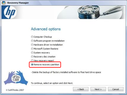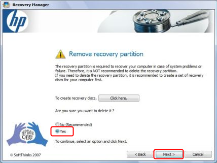 HP Recovery Manager supprimer la partition de récupération