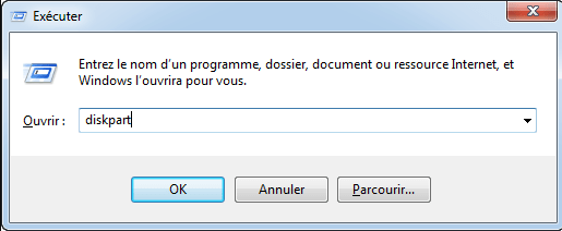 Étape 2. Appuyez sur Windows + R sur votre clavier. Tapez diskpart dans la fenêtre contextuelle et appuyez sur Entrée.
