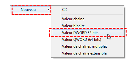 Cliquez avec le bouton droit sur la zone vide. Sélectionnez Nouveau → Valeur DWORD 32 bits. Nommez-le avec WriteProtect.
