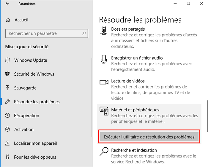 Méthode 1. Exécuter l'utilitaire de résolution de problèmes de Windows