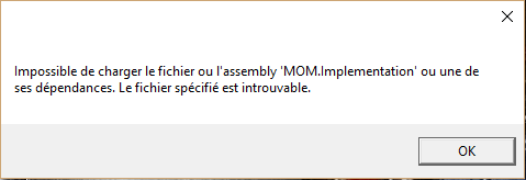 Message : Impossible de charger le fichier ou l'assembly 'MOM.implementation"