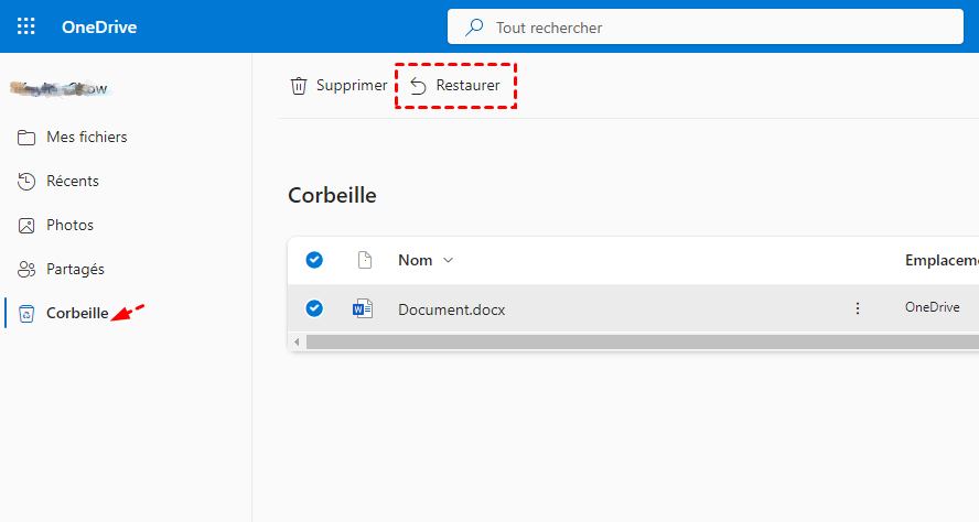 Cette méthode est idéale lorsque vous avez récemment supprimé un fichier (dans les 30 derniers jours pour les comptes personnels, ou jusqu'à 93 jours pour les comptes professionnels/scolaires) et que vous avez accès à votre compte OneDrive.