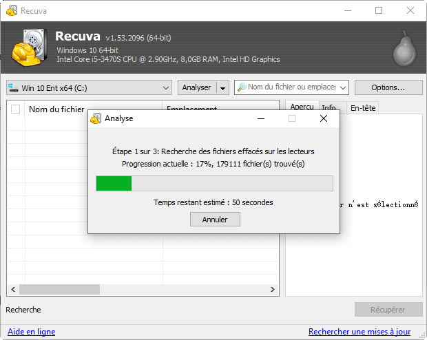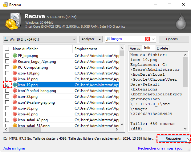 Restaurer les fichiers supprimés de la Corbeille avec Recuva
