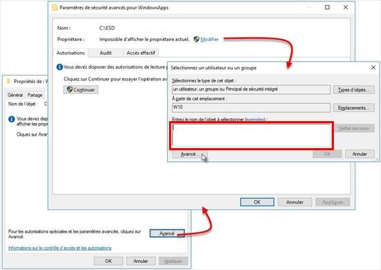 3. Cliquez sur le lien Modifier (en regard de l'étiquette du Propriétaire), puis le dialogue Sélectionnez un utilisateur ou un groupe s'affiche.