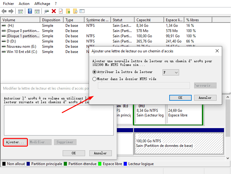 En plus des 2 outils ci-dessus, vous pouvez également utiliser la Gestion des disques pour attribuer une lettre de lecteur au disque.