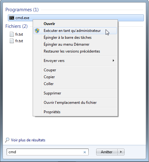 1. Pour ouvrir l'invite de commande, tapez cmd dans la zone de recherche, puis un clic droit sur le programme et sélectionnez Exécuter en tant qu'administrateur.