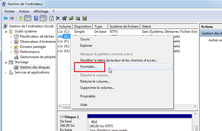 Vous pouvez formater chaque partition sur votre disque dur, ou vous pouvez directement initialiser le disque. Les deux moyens suppriment les données sur le disque dur, donc, s'il y a des données importantes stockées sur votre disque dur, il faut les sauvegarder d'abord. Vous pouvez également créer une clé USB bootable WinPE pour formater le disque système avec AOMEI Partition Assistant. Si vous souhaitez encore utiliser le CMD pour formater le disque dur, la méthode suivante vous aidera.