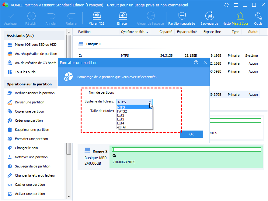 AOMEI Partition Assistant fournit l'interface utilisateur la plus simple, il faut seulement quelques clics pour formater disque dur.