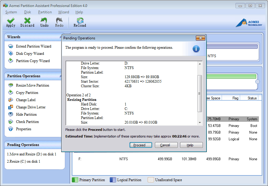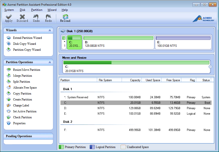 AOMEI Partition Assistant Pro Edition est spécialement conçu pour étendre la partition système et d'autres partitions d'un disque pour Windows 8.1/8/7/XP/Vista 32 et 64 bits. Il peut utiliser pleinement l'espace libre/non alloué de ce disque pour répondre à vos besoins. Le programme va réduire automatiquement les grandes partitions pour libérer plus d'espace, puis augmenter la taille des partitions spécifiées. C'est facile et sûr sans perdre de données et reformater la partition. En outre, ce gestionnaire de partition Windows ausssi vous permet de réaliser des opérations plus avancées.