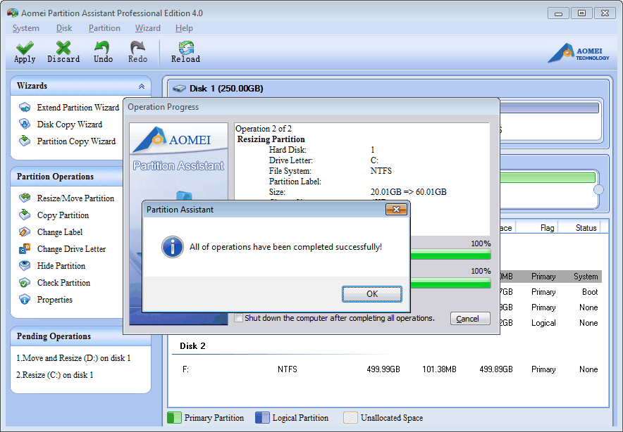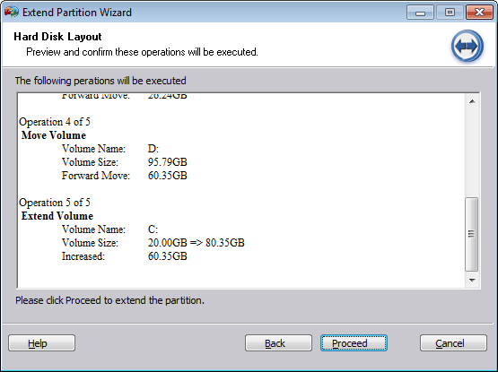 Étape 6: Il montre que l'opération est en cours de traitement. Vous recevrez un rapport après l'accomplissement. Puis voyez le lecteur C: dans l'Explorateur, vous trouverez qu'il a été étendu.