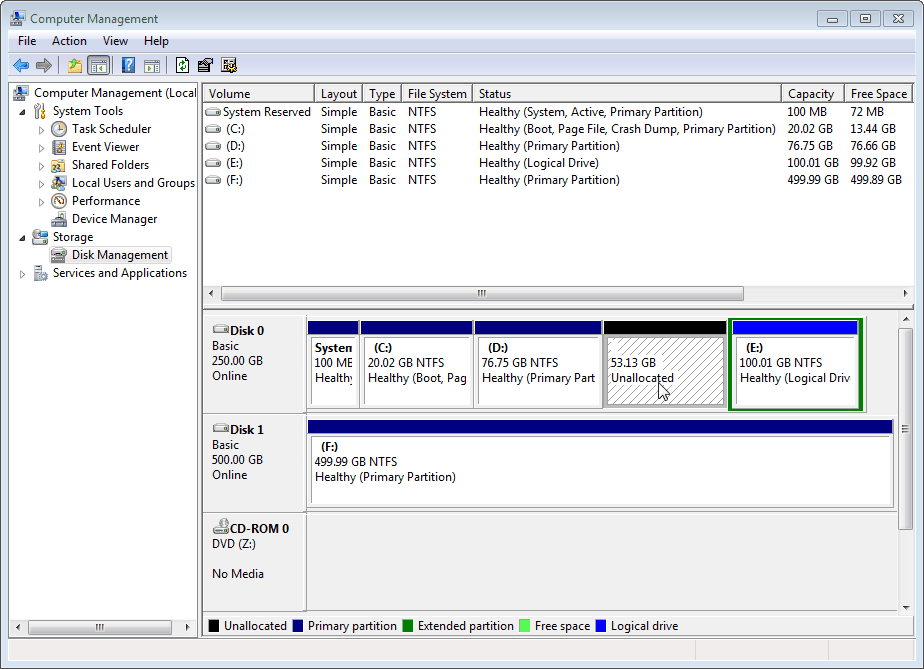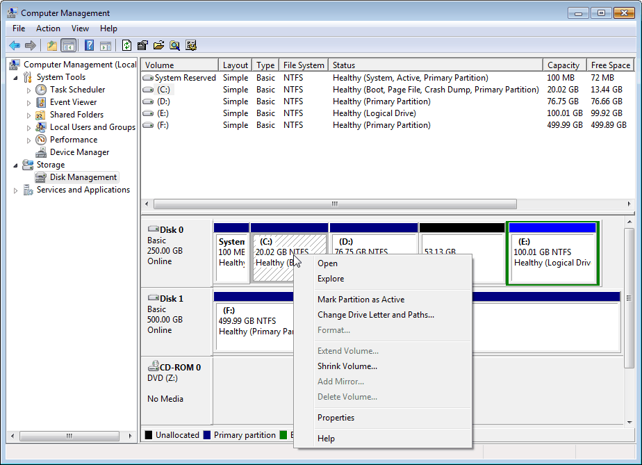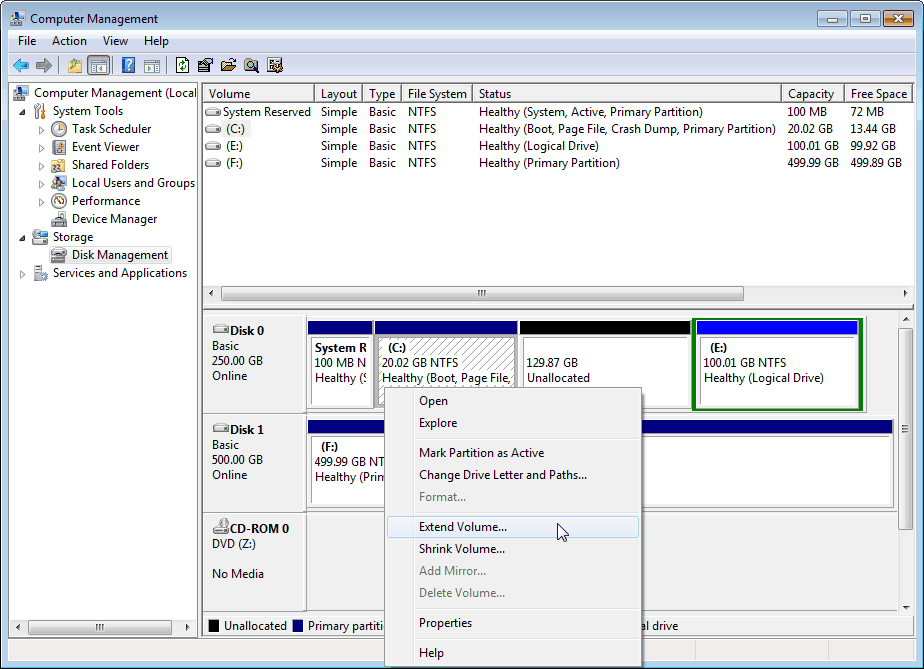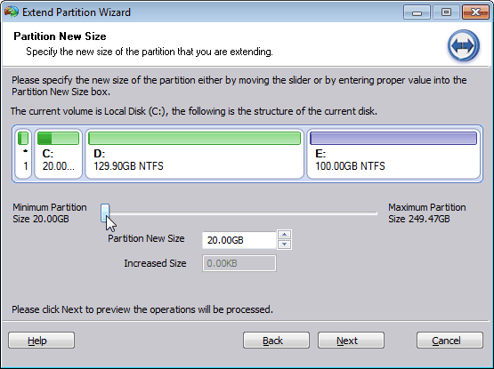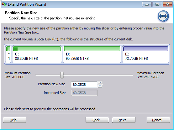 Toutefois, dans Windows Vista, Windows Server 2008, Windows 7 et Windows 8, une expansion du volume n'est plus une tâche difficile, parce que leur Gestion des disques a augmenté des fonctions telles que l'expansion du volume et la réduction du volume et l'extension de partition système qui sont faciles à utiliser sans compter sur des utilitaires tiers de partitionnement. Et il est possible d'étendre la partition primaire et la partition logique.