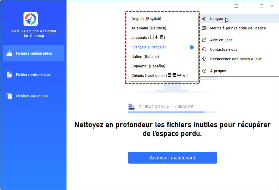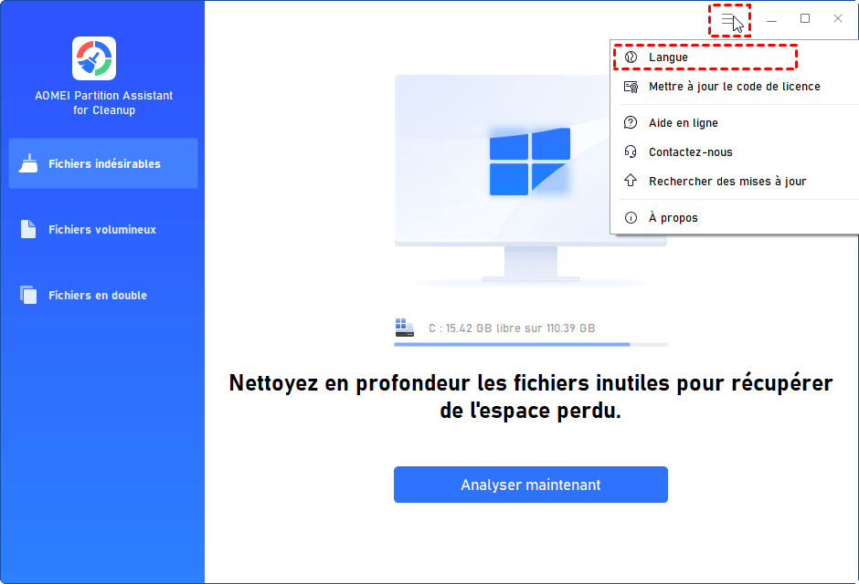 Comment changer la langue dans Partition Assistant for Cleanup étape par étape ?