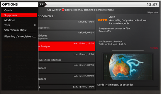 1 : Supprimer les enregistrements TV inutiles (via TV)