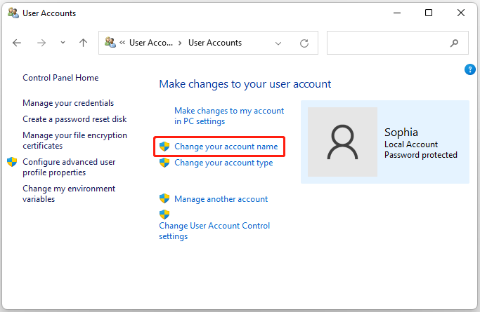 Étape 4. Cliquez sur "Modifier votre nom de compte".
