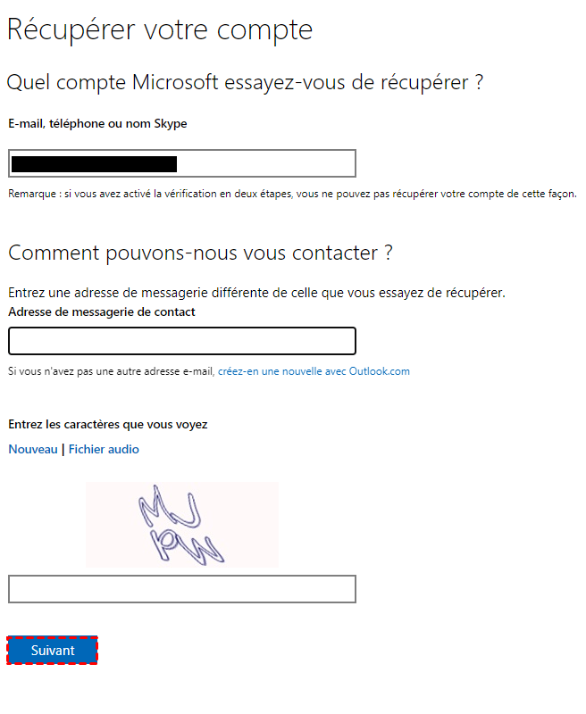Méthode 4. Réinitialiser le mot de passe avec récupération de compte de Microsoft