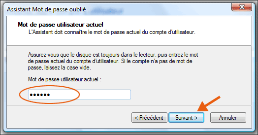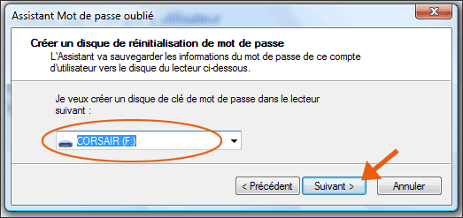 Étape 2. Vous pouvez ensuite voir la fenêtre « Assistant Mot de passe oublié », et choisir la clé USB comme le disque de réinitialisation de mot de passe, alors « Suivant ».