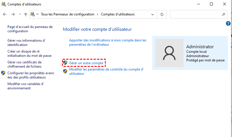 Méthode 2. Supprimer le mot de passe administrateur avec Panneau de configuration